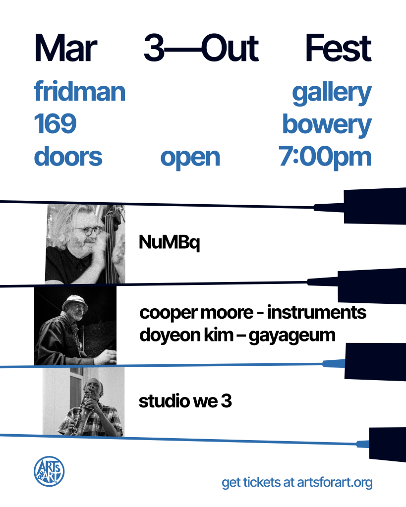 The OUT Fest tracks the history of FreeJazz development on the LES and surrounding areas. It was where the music and art developed in an intensely creative unbounded scene. We will celebrate and make space for this creativity to bring Light into these times with older and younger artists, as we build a future from the best of our past.